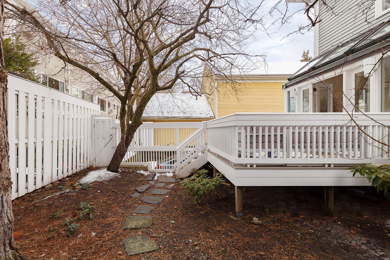 Harvard Square—perfectly located townhome feels like a single-family. Tucked away from the street this home is wonderfully secluded offering a backyard and a sizeable luxurious deck right off the kitchen perfect for outdoor gatherings. Bright and beautifully updated —punctuated with incredible light, dramatic glass walls, and skylights everywhere. The first-level comprises the living room with a cozy wood-burning fireplace, an elegant dining room with an option to be used as a fourth bedroom, and a newly renovated eat-in kitchen. Moving upstairs, the second floor has three large bedrooms and two full baths. The massive primary bedroom is well-appointed with an abundance of closets. The two-roomed en-suite bathroom offers a separate spa-like tub room flanked by a wall of windows. Attached garage parking plus one off-street parking sweetens the deal. It’s easy to picture yourself in this perfect Cambridge abode, you can have the spaciousness and tranquility you crave without giving up the urban lifestyle you love.