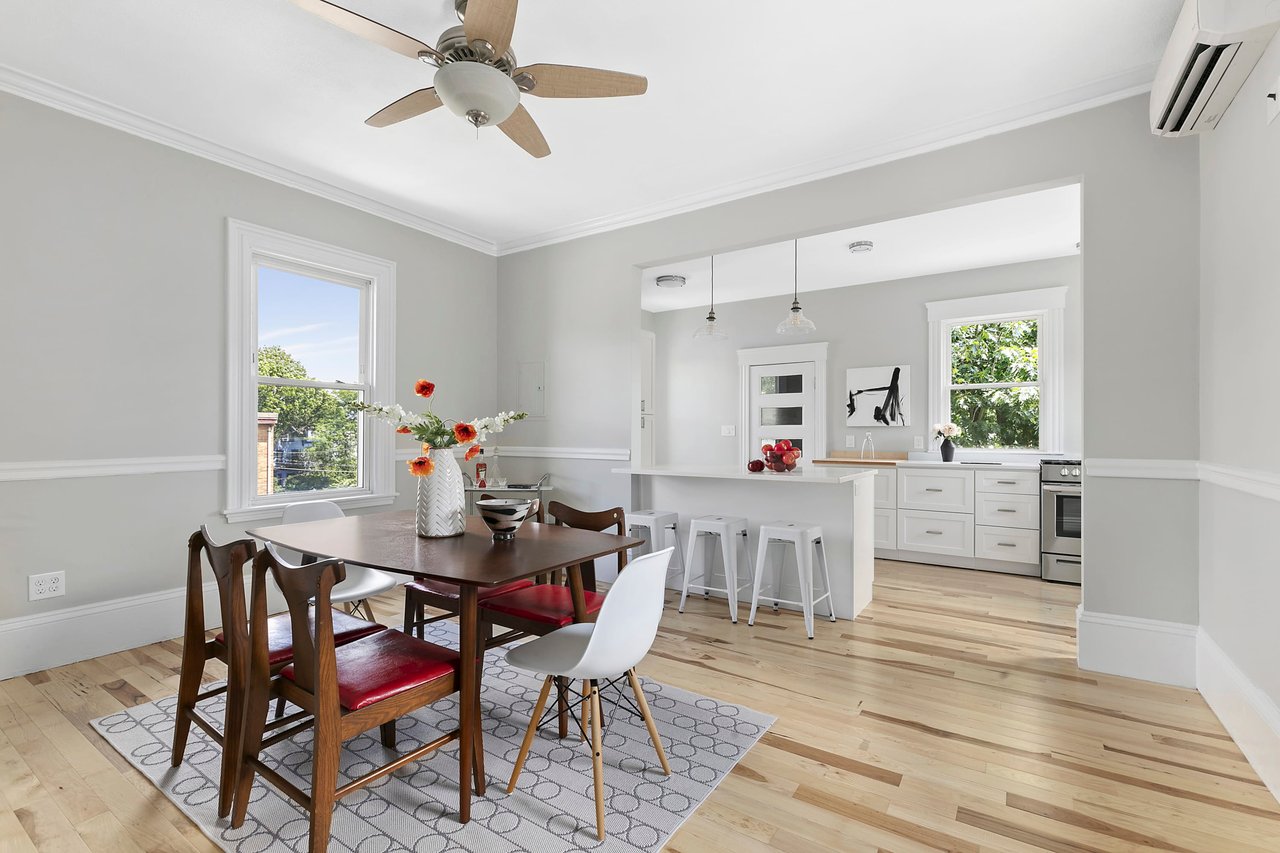 From there your focus is pulled towards the heart of this home with its newly updated kitchen that's open to the dining and gathering space, directly connecting you to a spacious private deck.