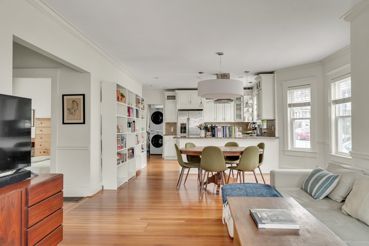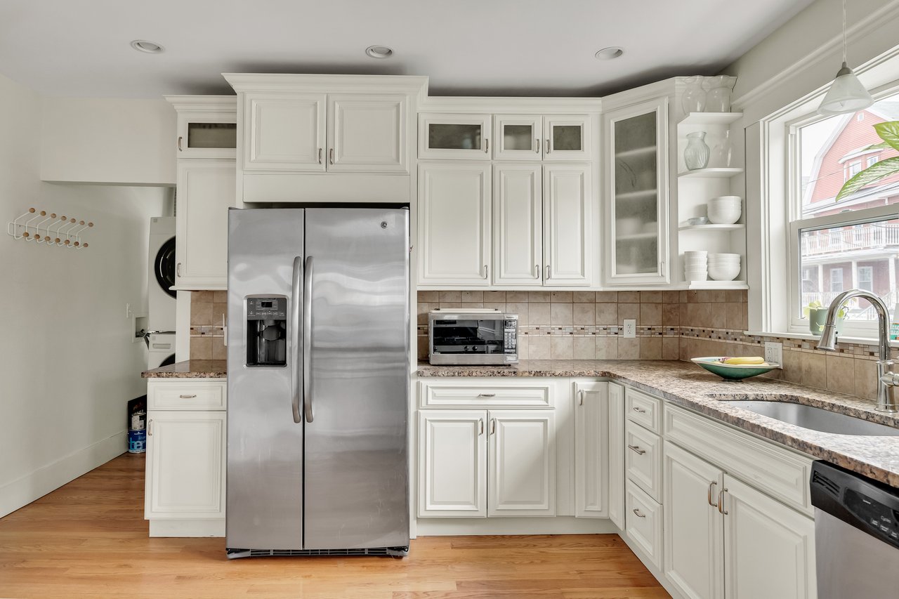 The heart of the condo is the spacious open kitchen, seamlessly connecting to the dining and living areas—perfect for hosting friends or enjoying quiet evenings at home. High ceilings and an abundance of windows flood the space with natural light, giving it a warm and inviting feel. Central AC ensures year-round comfort, while the in-unit laundry makes day-to-day living a breeze.