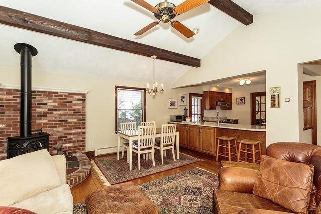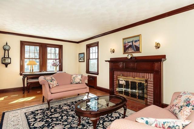 Pristine 9 room, 4-bedroom central entrance Colonial in a perfect location. This lovely home already has many updates and improvements, and could be your forever home. There’s an open floorplan from the kitchen to the family room with cathedral ceiling and gas stove. The formal dining room has a built-in corner hutch, and the front to back living room has a wood-burning fireplace. Relax in the 3-season porch overlooking the rear yard. Three generous sized bedrooms are on the 2nd floor, and the 3rd floor is a beautifully finished bedroom with separate sitting area. Updated windows and cedar shake-style vinyl siding. Tranquil and private expansive yard. Close to Robbins Farm Park, Brackett Elementary School, and bus transportation to Alewife or Harvard.