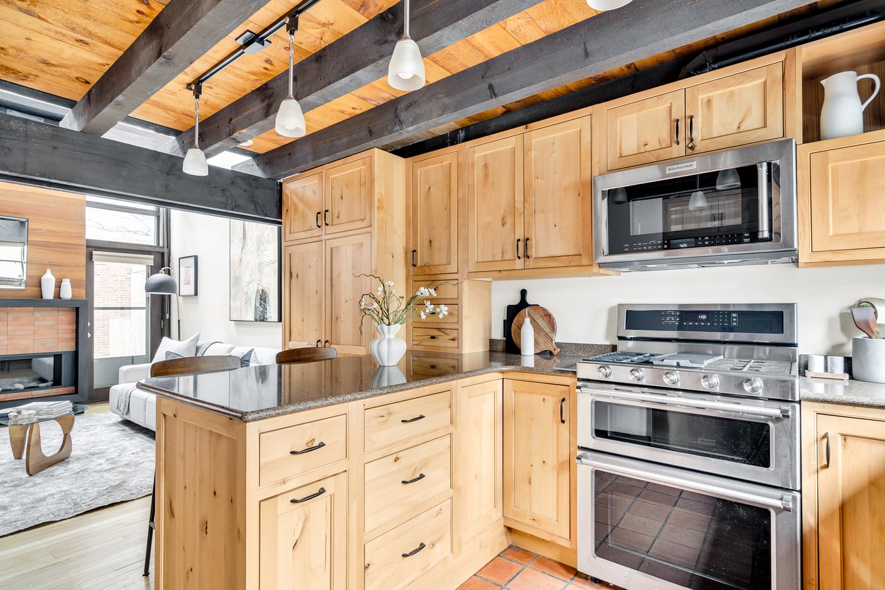 Beautiful natural wood cabinetry and stone countertops