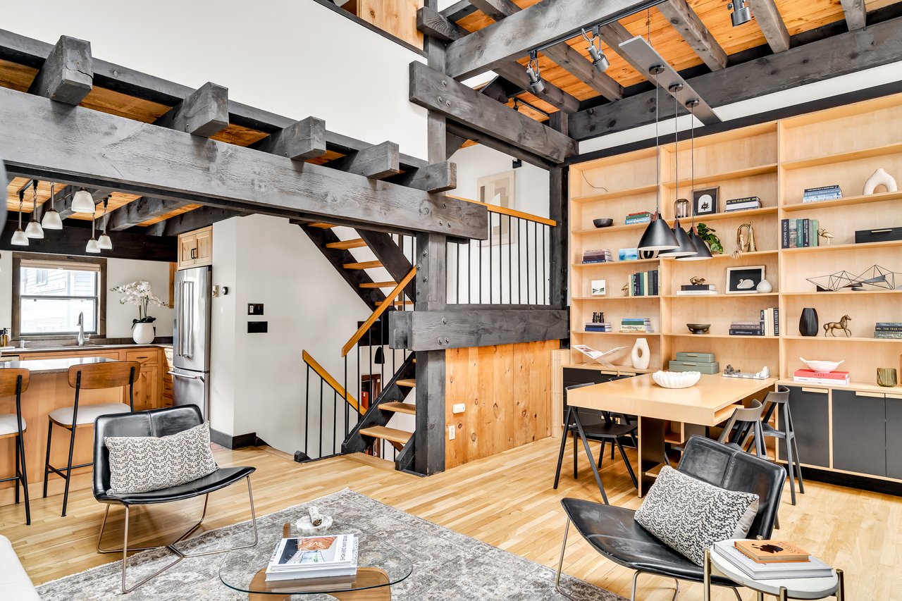 Updated attached single-family home—this Bell and Fandetti townhouse blends bold architectural design with stunning modern updates. Just minutes from the Harvard Red Line T, Harvard Law School, Divinity School, and Cambridge Library, it offers both city convenience and a peaceful residential vibe. Part of a cluster of period homes, the townhouse features two bedrooms, a home office, a bonus lofted sleeping area or storage, and two updated full baths. The main living and dining space impresses with soaring ceilings, a dramatic gas fireplace, and oversized windows filling the space with natural light. A glass door opens to a fenced private yard—your serene urban escape. The renovated open kitchen is both stylish and functional, ideal for daily life or entertaining. A large laundry/mudroom with a dog washing station and direct access to the one-car garage with an EV charger completes this wonderful home.
