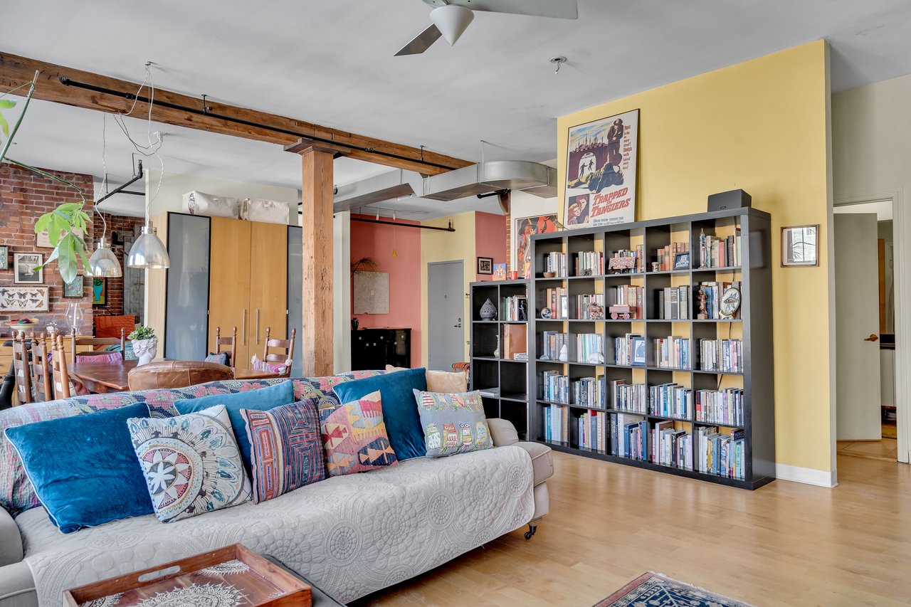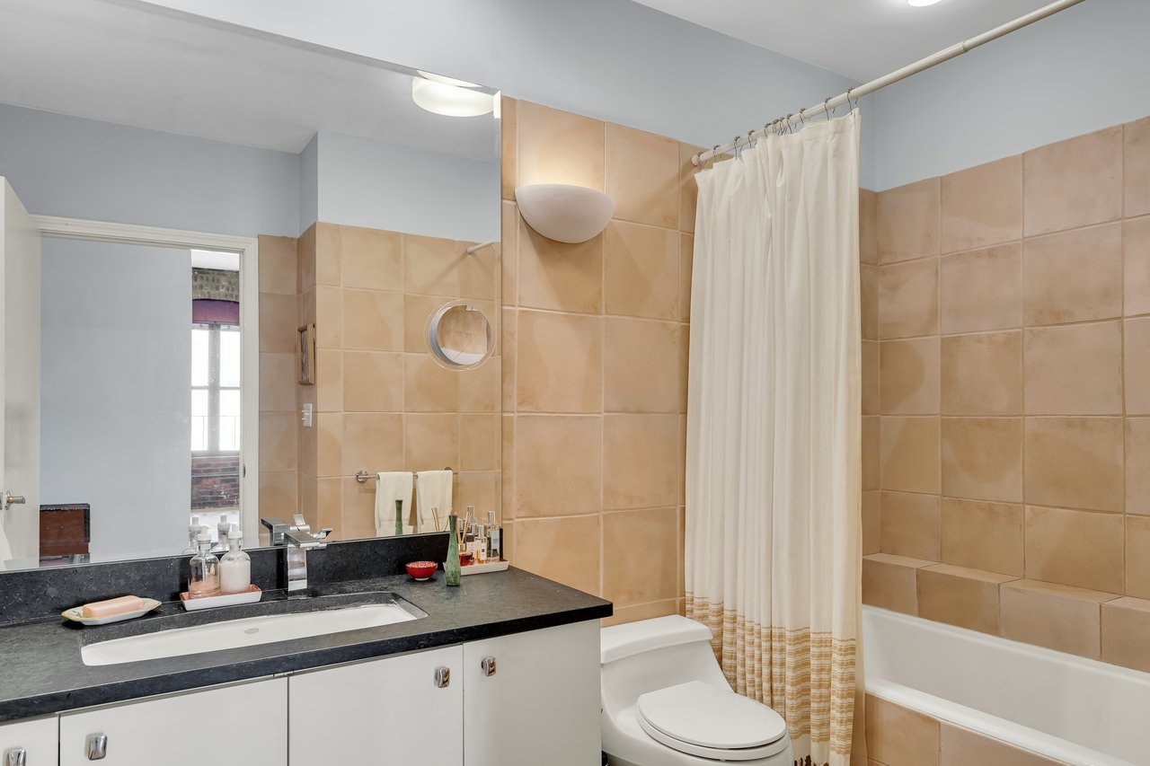Soaring high ceilings and oversized windows bathe the space in natural light, showcasing the exposed brickwork and industrial details that speak to its storied past. The open floor plan provides an airy, flexible layout, featuring a dedicated dining room perfect for entertaining, a cozy study ideal for remote work or creative pursuits, and even a second sleeping area for guests. The bedroom offers a serene retreat, while the loft’s design invites endless possibilities to tailor the space to your needs.